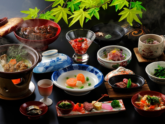 向瀧では離れの客室での夕食・朝食を提供しており、食事は会津の山菜・野菜を中心に地元食材を活かした本格的な日本料理です。14〜16品の料理が季節ごとの食材で構成され、会津の伝統料理(こづゆや会津のコイ料理など)も含まれています。「食事が丁寧で感動した」「一品一品の素材感がよくわかる料理だった」という口コミが多いです。