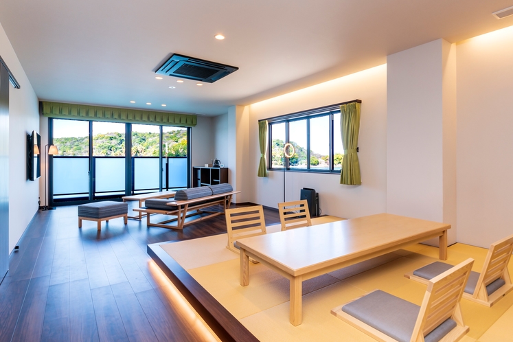 天草渚亭(施設番号: 68202)は、松島温泉エリアに位置する全室オーシャンビューの旅館です。比較的新しい設備で、モダンな和室にテラスと露天風呂が付いた客室が人気です。