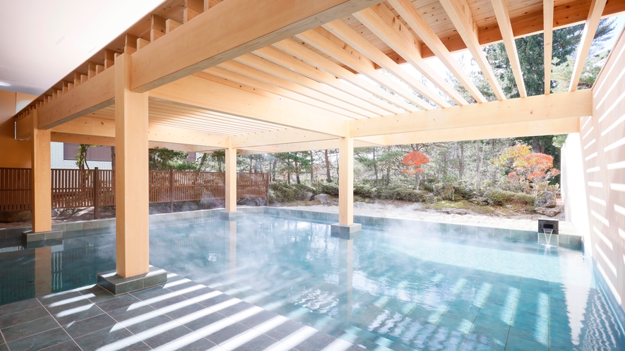 温泉好きのグループなら、これだけでかなり盛り上がります。「次はあっちの露天風呂に行こう」と温泉ハシゴを楽しむのは、グループ旅行ならではの醍醐味ですよね。泉質はアルカリ性単純温泉で、肌にやさしく、温泉に慣れていない方でも入りやすいのが特徴です。