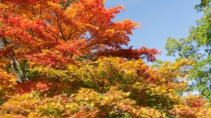 丹沢の秘湯(中川温泉・広沢寺温泉・七沢温泉)は、10〜11月の紅葉シーズンが特に美しいです。温泉の湯けむりと色づいた山の風景のコントラストは、秘湯ならではの贅沢な景色。