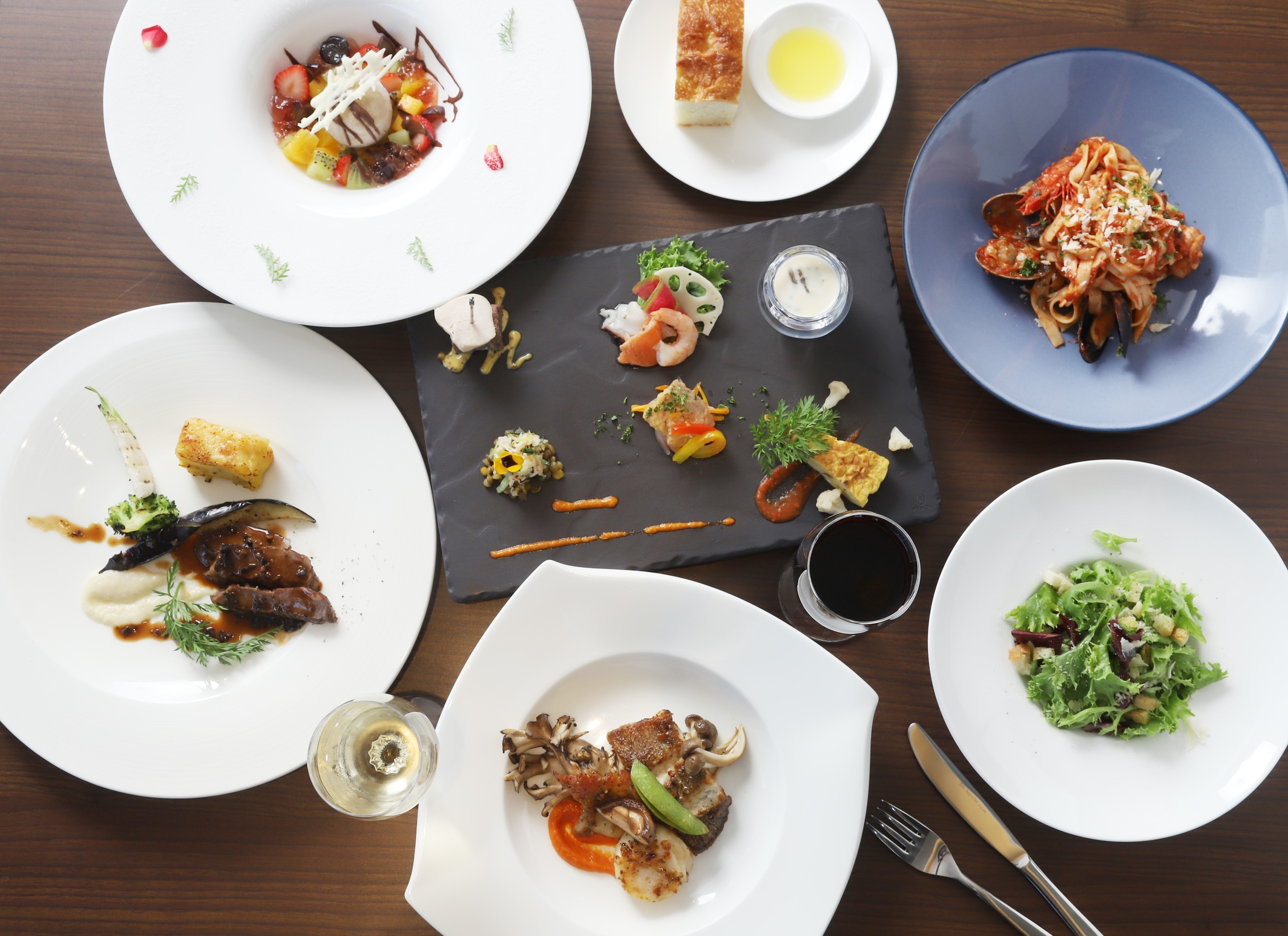 館内のレストランでは、北海道の食材を使ったコース料理が楽しめます。釧路の海の幸を中心にした料理は、北海道らしさを存分に味わえる内容。スイートルーム宿泊者向けのディナープランを利用すると、食事込みで記念日の演出がまとめて完結します。